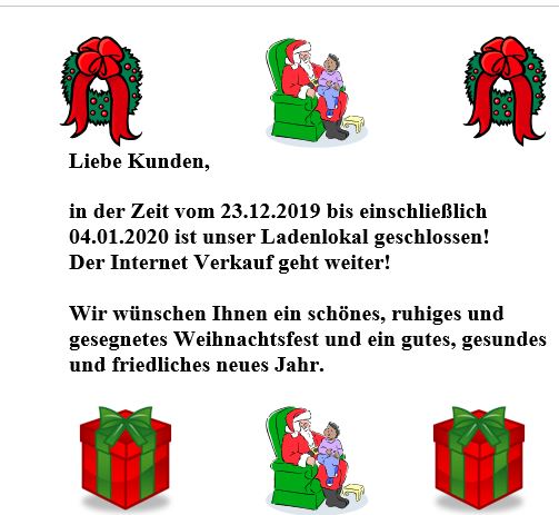 Wir wünschen Ihnen ein schönes, ruhiges und gesegnetes Weihnachtsfest und ein gutes, gesundes und friedliches neues Jahr.